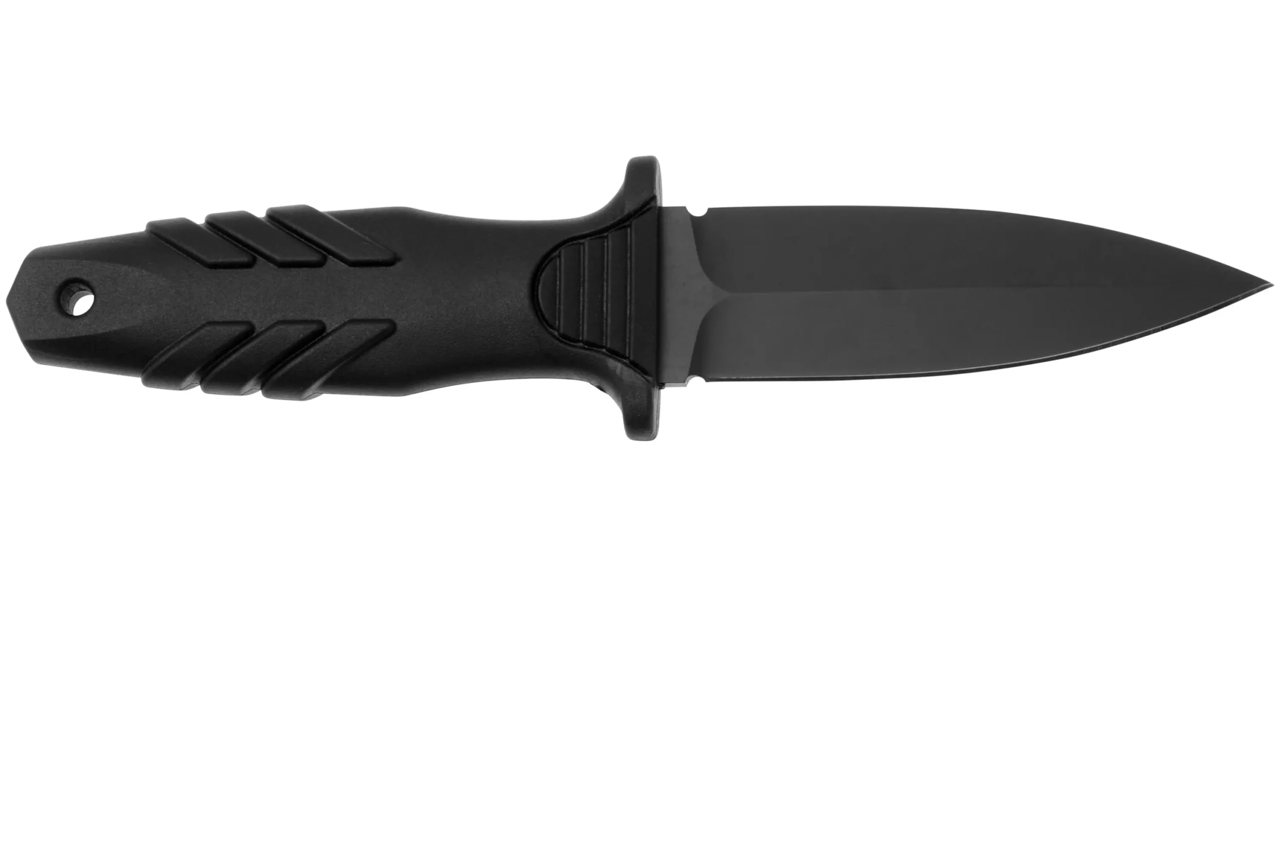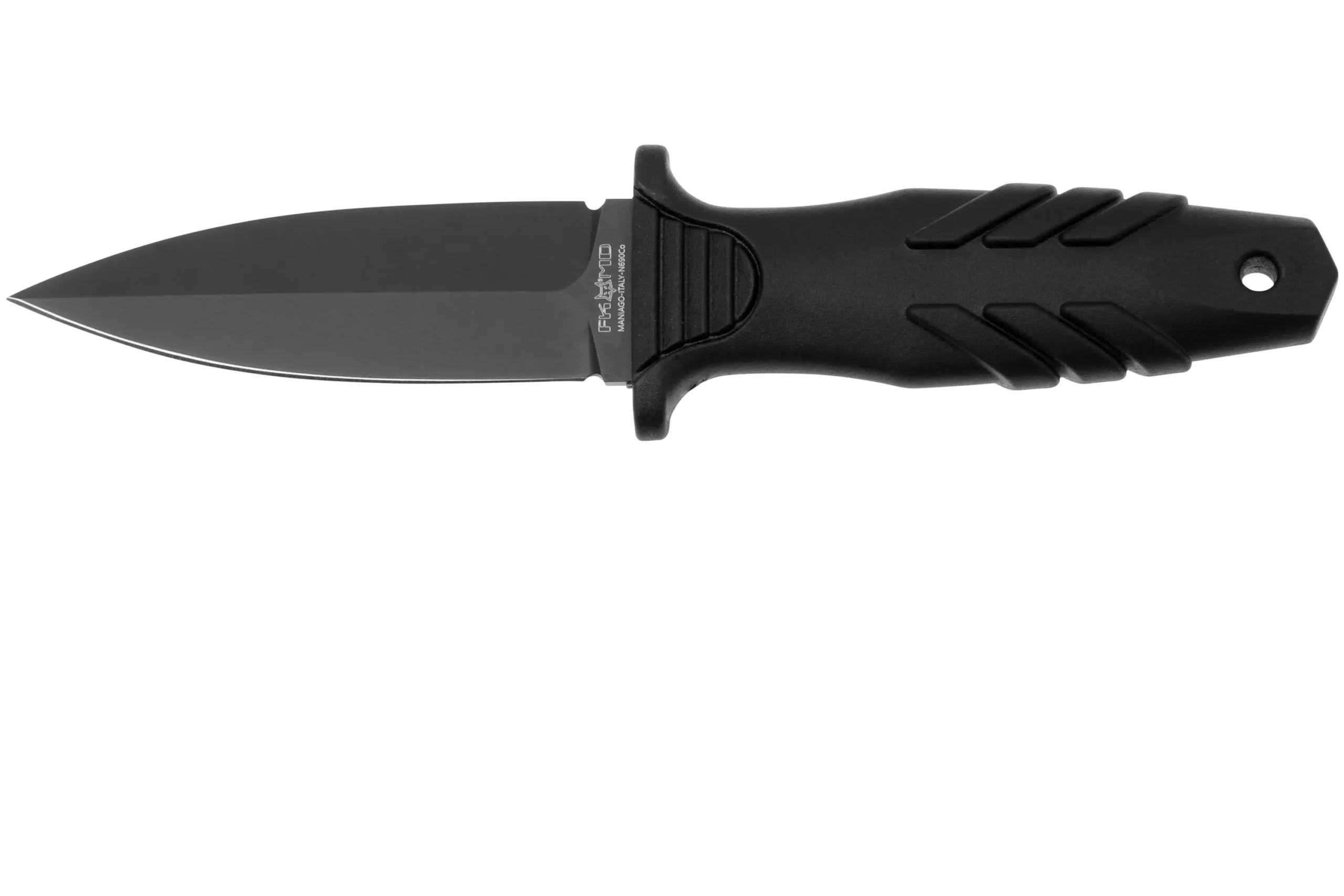 „Fox Knives Tactical Elementum Dagger FX-647“ yra šaunus taktinis peilis. Geležtė yra vienpusiai šlifuota, o tai reiškia, kad tik viena pusė yra aštri. Geležtė pagaminta iš „Böhler N690Co“ plieno. Tai austriškas plienas, kuris gerai išlaiko aštrumą ir yra lengvai galąstamas. Geležtė sustiprinta teflono danga. Šis papildomas sluoksnis apsaugo geležtę. Rankena pagaminta iš polipropileno ir termo gumos mišinio. Dėl to rankena yra tvirta ir patogi. „Fox“ užtikrino dar geresnį sukibimą, pridėdama kelis didelius griovelius. Rankena sustiprinta dvipuse apsauga. Ši apsauga užtikrina, kad jūsų ranka visada būtų už ašmenų. Peilį nešiojate su praktišku „Kydex“ dėklu. Jį lengva pritvirtinti prie diržo. Dėklas taip pat suderinamas su MOLLE sistema, todėl jį galite lengvai pritvirtinti prie kitų gaminių, taip pat sustiprintų MOLLE tvirtinimo elementais. (Maksimalus diržo plotis 5,5 cm).